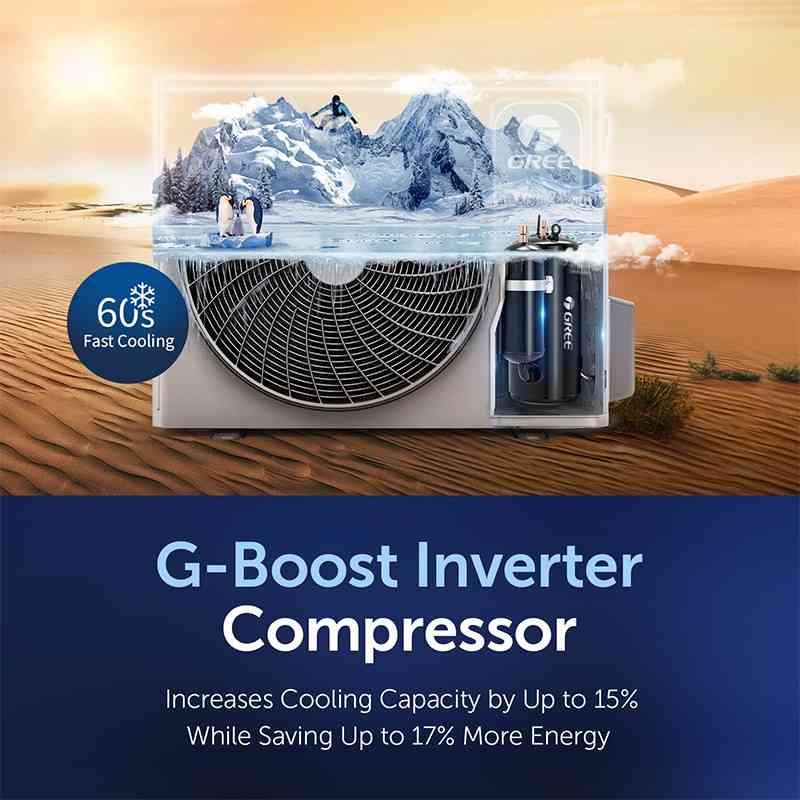 تقنية ضاغط إنفيرتر: يضبط مكيف جري ٣ طن سرعته ديناميكيًا لتوفير الطاقة وتقليل الضوضاء وتوفير تبريد مستقر.